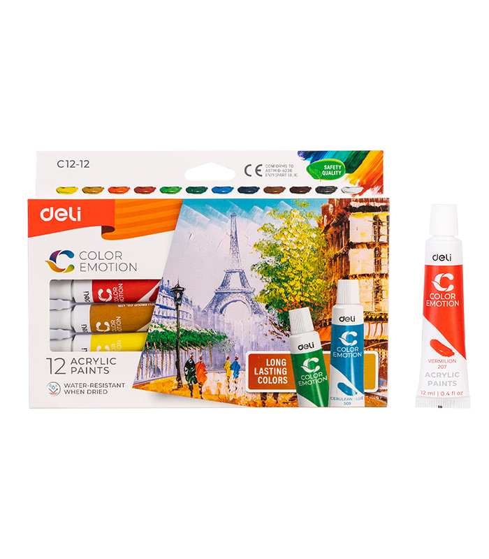 الرئيسية الأدوات الفنية ألوان اكرايليك الوان DELI اكريلك 12 لون رقم 12-12