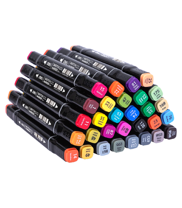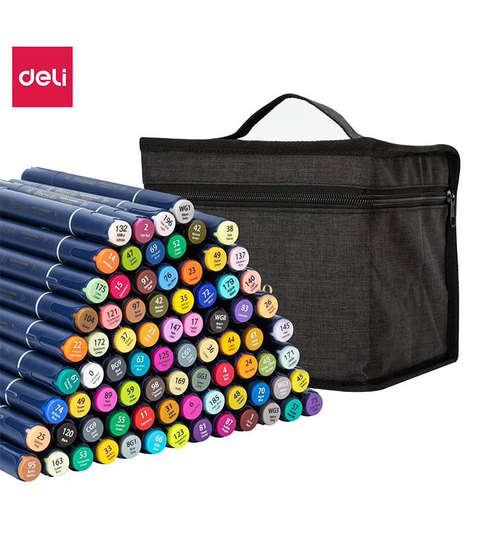 الوان DELI اكريلك 30 لو رقم 70806ديلي شنطة اقلام ماركر تحديد كحول دراجات 30 قلم مزدوج السن مشطوف وعادي 70806