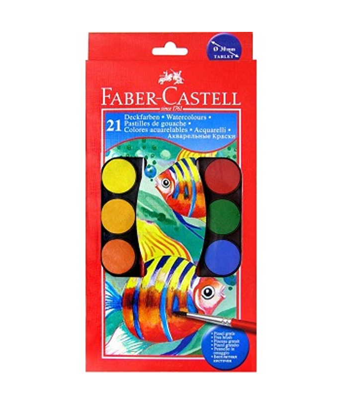 الوان مائيه اقراص + 2 فرشة 21 لون فابر كاستل