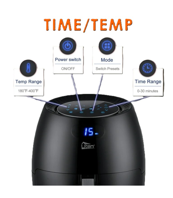 إير فراير Uten بسعة 8 لتر هي الحل الذكي لطهي صحي وسريع بدون زيت أو بكمية قليلة جدًا.