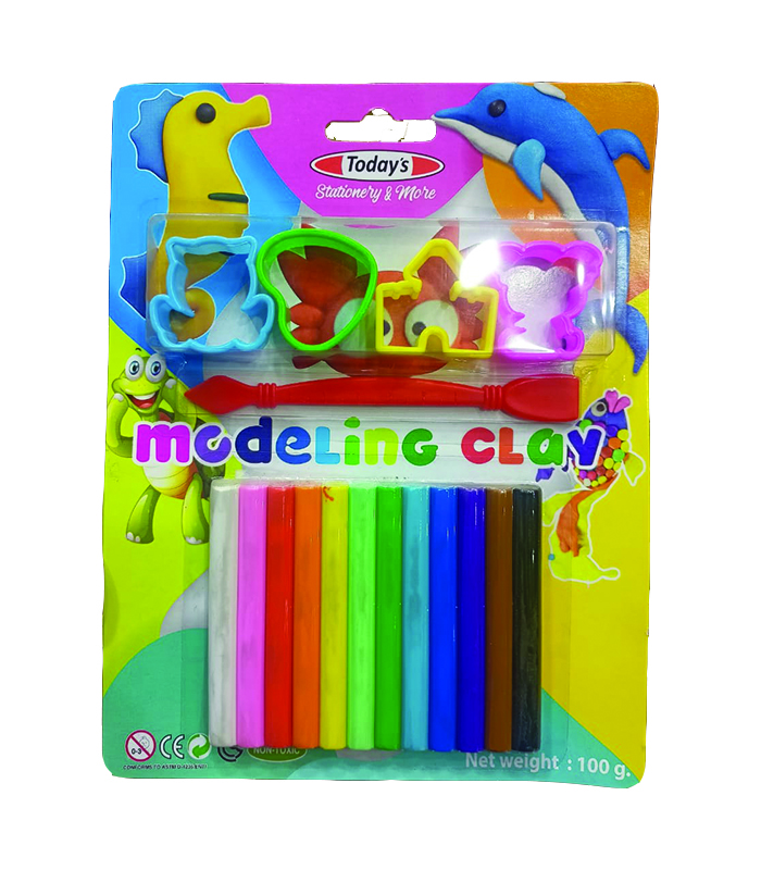 صلصال 12 صابع100 جرام + 4 لعبه + سكينه