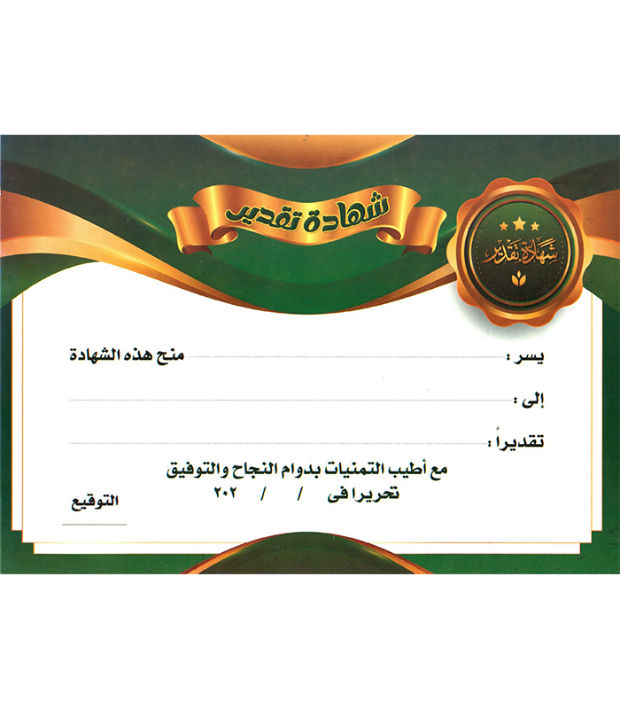الرئيسية الأدوات المكتبية ورقيات طباعه شهاده تقدير A4