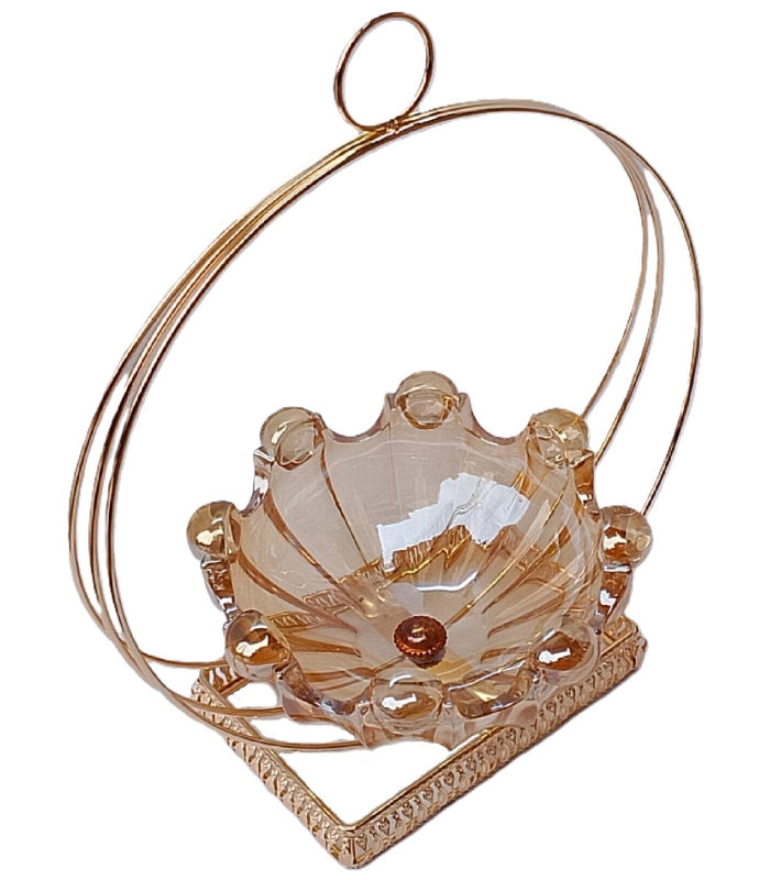 طبق حلويات زجاج عسلي بغطاء و حامل 15سم 16412-7