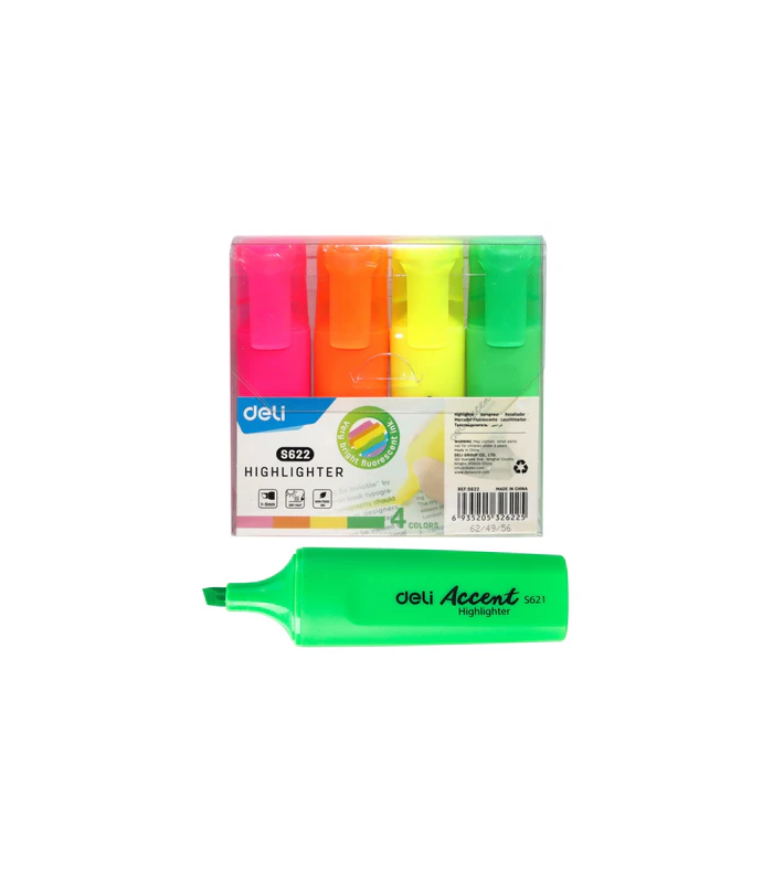 طقم هايلايتر DELI عدد 4 لون رقم s622