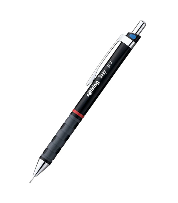 قلم سنون ROTRING مقاس 0.7 ملم واطار خارجي اسود من روترينج (يتضمن 12 سن رصاص + ممحاة)