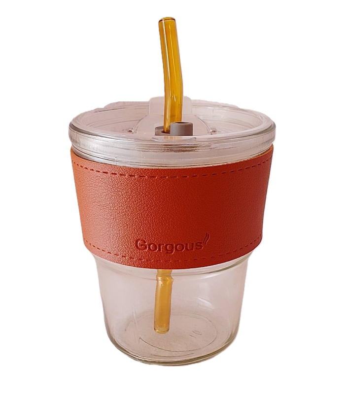 كوب زجاج مع شفاطة وماسك