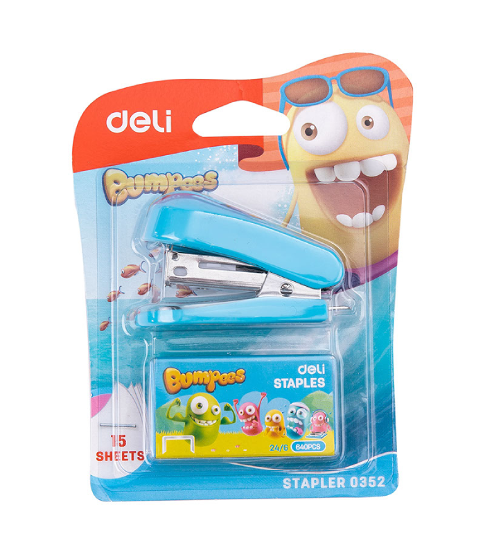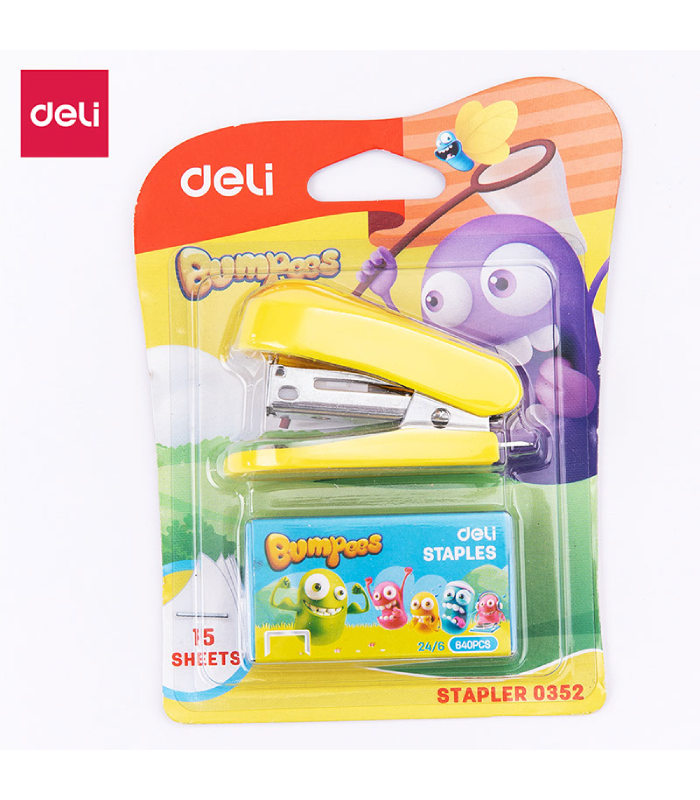 دباسة DELI صغيرة مع علبة دبابيس رقم E0352